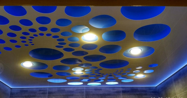 Если брать конструкции со скрытым освещением, то оно располагается между двумя слоями полотна и подсвечивает потолок по периметру. Подсветка может быть белой или цветной.