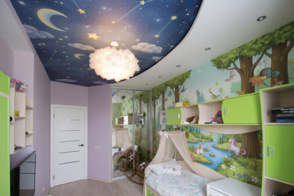 У натяжных полотен очень много плюсов. В зависимости от конфигурации могут стать украшение интерьера. Красиво и аккуратно выглядят, обладают подвесным креплением, подходят студии, квартире, дому.