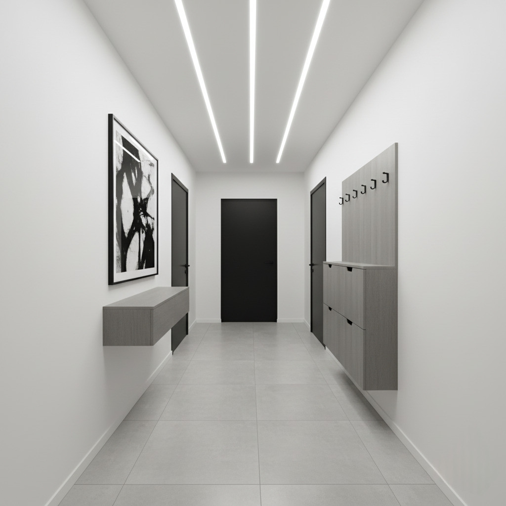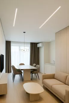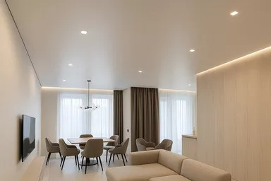 - Встраиваемая оригинальная подсветка разных типов (включая карниз) – от дизайнерского контурного света по периметру до парящих потолков для атмосферы.