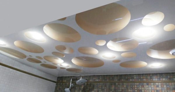 Если брать конструкции со скрытым освещением, то оно располагается между двумя слоями полотна и подсвечивает потолок по периметру. Подсветка может быть белой или цветной.